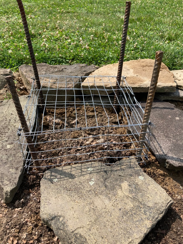 I found plans online for making a mesh box to protect the nest and eggs and quickly put one together (the plans I used are at https://wiatri.net/Inventory/WiTurtles/Volunteer/Images/ProtectingTurtleNests.pdf). As we carefully installed the box over the nest, we disturbed a large ant colony and a wolf spider carrying her egg sac on her back. This little spot was a hotbed of egg-laying! We put some temporary rocks around the base of the cage to discourage predators digging, but will remove them in about a month so as not to impede the baby turtles. With any luck, they will hatch in 45-90 days.